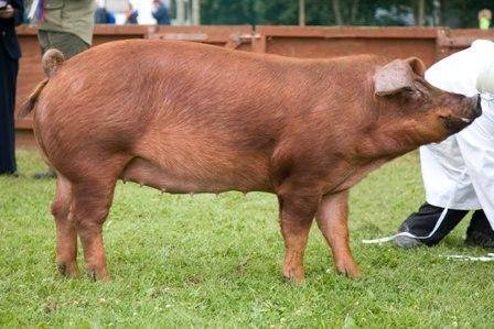 Модерният Дюрок е средно голяма порода. Теглото на възрастен глиган е 400 кг, на прасе - 350 кг. Дължината на тялото на дива свиня може да бъде до 2 m. кочина строителство по-добре е да вземете предвид такъв нюанс веднага, така че по-късно да не се налага да възстановявате всичко.