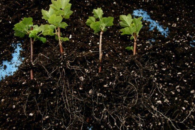 Ако съкратите корените, когато засаждате разсад от червено френско грозде, заместващите издънки ще растат по-бързо