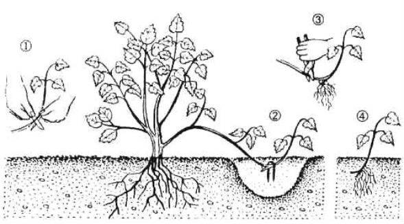 - Размножаване с въздушни слоеве. През пролетта един от страничните издънки на храста с орлови нокти е огънат към земята, фиксиран и покрит с пръст. Постепенно клонът се вкоренява и пониква сам. Година по-късно, след като издънката презимува с майчиния храст, тя се отрязва и трансплантира на ново място.