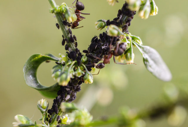 Те се борят с листните въшки с помощта на инсектициди или народни средства, например настойки от вратига или чесън.