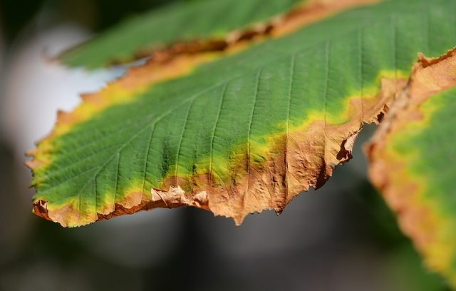 - Листата придобиват обгорен, увиснал вид, стават кафяви.