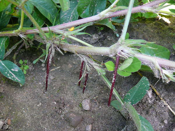 Цветоносите излизат от пазвите на листата, носят 4-7 цветя от типа молец, което е характерно за бобовите растения, които включват фъстъци. Венчелистчетата са белезникави или наситено жълти. Фъстъченото цвете цъфти само за един ден. Ако се получи опрашване, яйчниците на боб започват да се образуват. В същото време расте гинофор, област на съда, и когато клонката се наклони, той расте в земята, издърпвайки заедно със себе си миниатюрния яйчник на боб на дълбочина 8-9 см. Схематични снимки показват как расте фъстъците. Един храст може да даде до 40 и повече зърна.