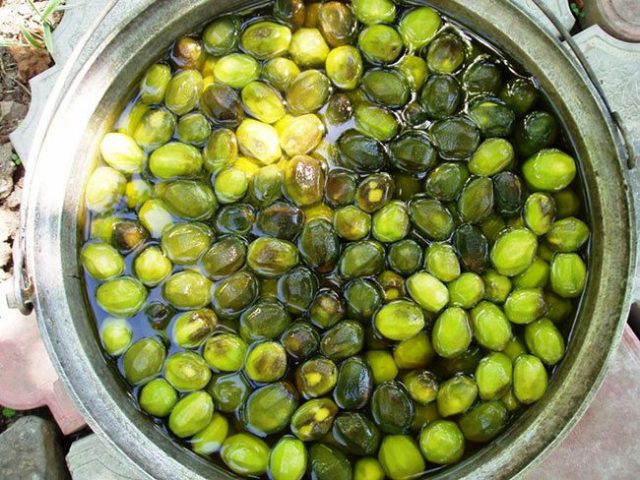 - Първо, цели зелени плодове се накисват в студена вода за 2 дни, като се помни да се сменя водата два или дори три пъти на ден.
