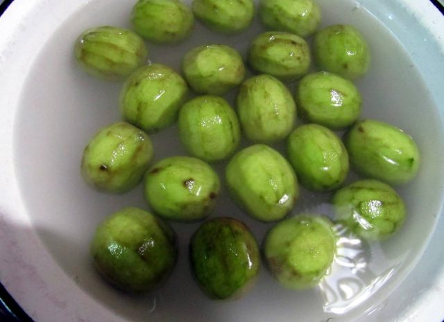 - След това плодовете се заливат с приготвен варов разтвор за 24 часа.