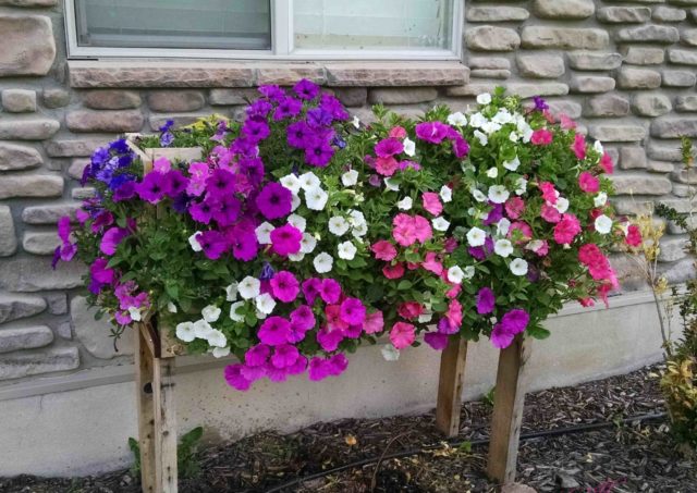 - Засаждане на растения съгласно препоръчаната схема. Размерите на храстите на петунията варират в зависимост от сорта, минималният интервал между тях е 25 cm.