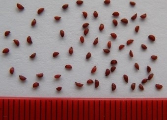 Семената са малки, червеникавокафяви, с форма на полумесец.
