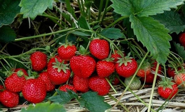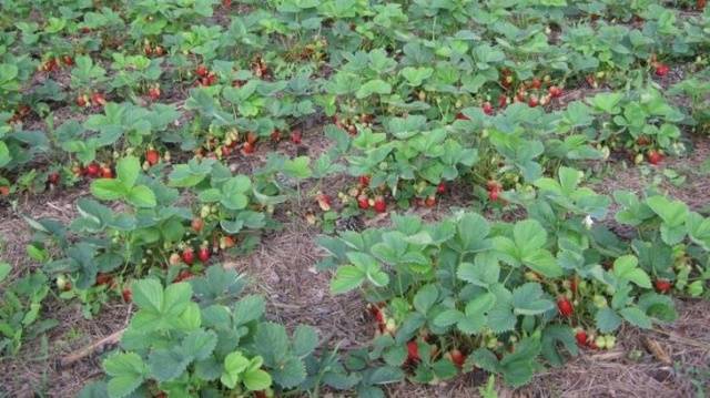 За зимата празничната ягодова плантация е покрита със слама или сено. Отгоре можете да поставите борови клони или просто да покриете с игли. Преди това храстите са покрити с торф. Органичните вещества ще станат допълнителна изолация за корените, както и тор.