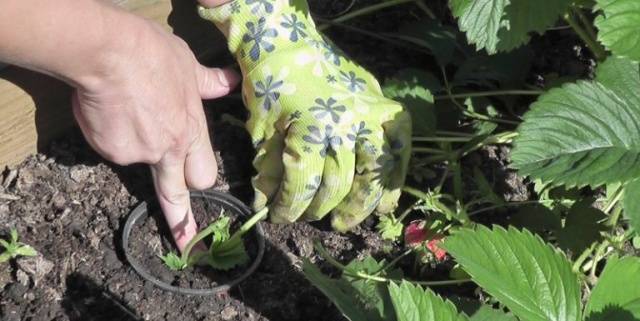 - Силните ягодови мустаци с развити розетки от листа се изправят и полагат на рохкава почва.Малък як се изстисква в земята на ръка. Гнездото е поставено във вдлъбнатина, леко покрита с пръст.