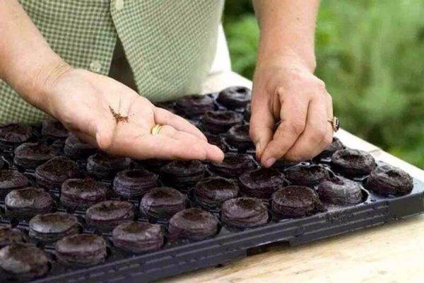 Можете да сеете в торфени таблетки, като ги накиснете във вода преди това. Традиционният метод се основава на потапяне на зърната в земята. Можете да сеете директно в отделни чаши или в общи кутии. Във втория случай, след отглеждането на три листа върху разсада, растенията се гмуркат в отделен контейнер.