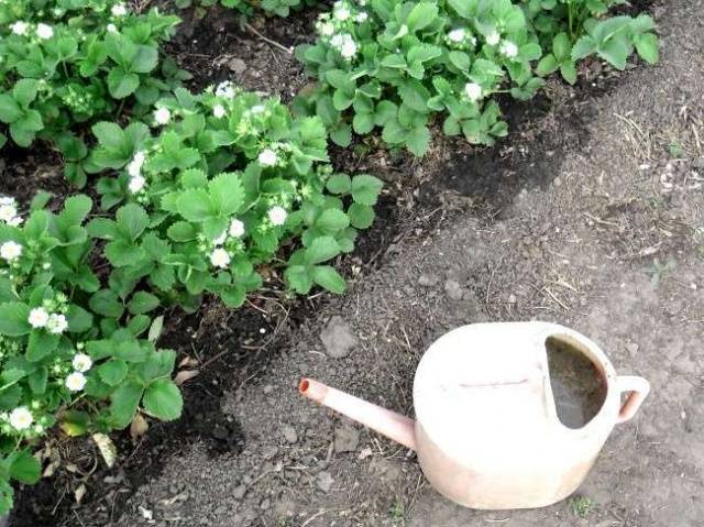 Тази ягода не понася липса на азот. За да го компенсирате, можете да правите 2 листни превръзки на сезон с разтвор на азотен тор, например амониев нитрат с концентрация 2 пъти по-малка, отколкото за кореновите превръзки. Те трябва да се извършват през периода на отглеждане на листа и стърчащи дръжки.