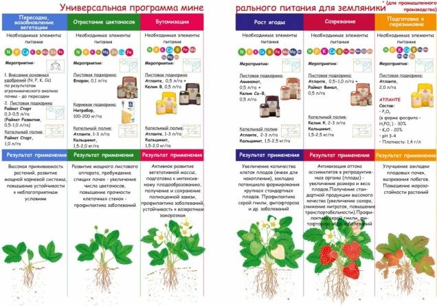 С появата на яйчника насажденията от градински ягоди се поливат с разтвор на борна киселина в размер на 10 g прах на 20 литра вода. От превръзките се използва разтвор на лопен или птичи тор, както и минерални комплекси. По време на цъфтежа се прилага поташ-фосфорен тор или се полива с разтвор на дървесна пепел в размер на 2 чаши на 1 кофа вода.