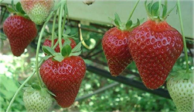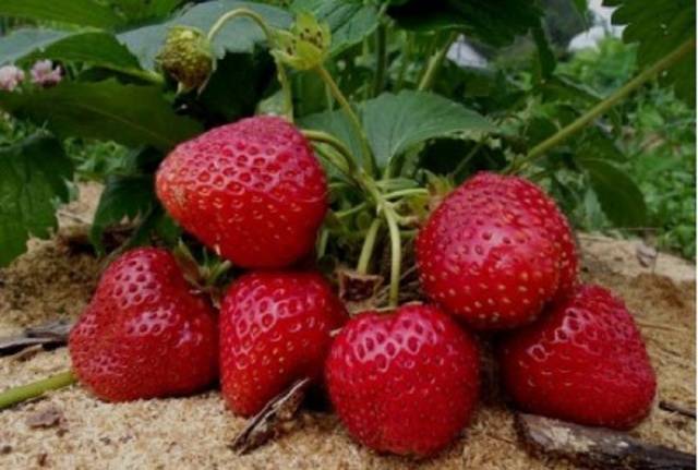 Някои хора харесват името „Чамора Куруши“ повече. И двете ще ви помогнат да намерите точния сорт. Този вид късно узряваща ягода се разпространява с висока скорост. Едроплодният и висок добив му позволи да заеме едно от първите места в списъка на популярните късни сортове. Ако не нарушите изискванията на селскостопанската технология, тогава плододаването продължава много дълго време. При недостатъчно поливане, зрънцето ще бъде летаргично и няма да достигне максималния си размер. В добро състояние храстът се бере от него от плодове с тегло 100 грама или повече. Тогава плодовете стават по-малки, но в сорта няма много малки плодове. Отличителна характеристика е цветът на плодовете. Когато узреят, те стават тухлени.