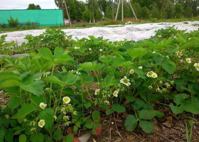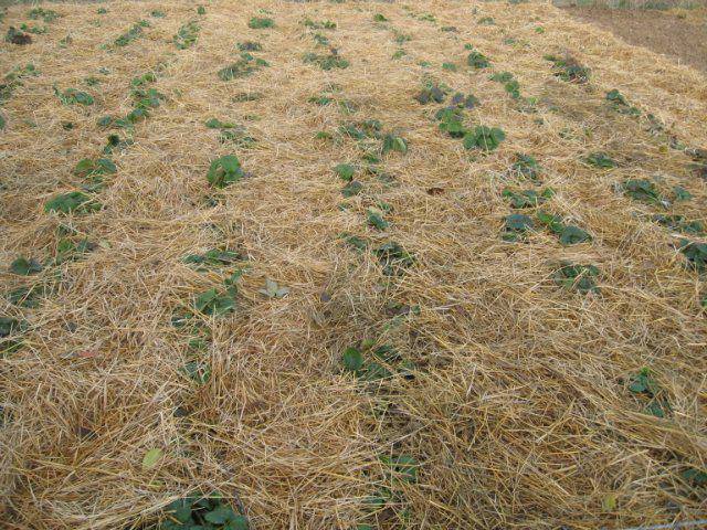 В южните райони на Русия е достатъчно просто да покриете ягодовите лехи с обикновена слама, както е на снимката. При по-тежки климатични условия ще се изисква капитална защита от замръзване, въпреки зимната устойчивост на сорта Соловушка.