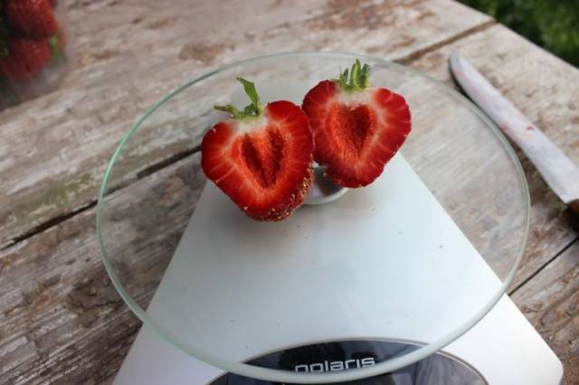Пулпът е сочен, яркочервен, не прекалено плътен, но не и воднист. Има ягоди с празен център, както е на снимката по-долу.