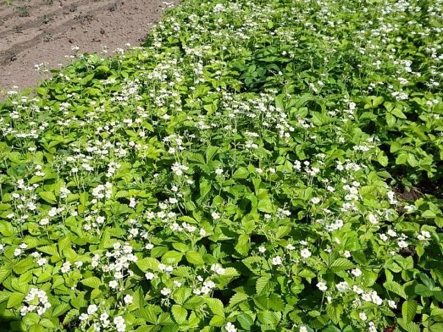 В съответствие с планираните маркировки върху покриващия материал е необходимо да се направят дупки с диаметър 5-8 см. В тях се засаждат млади ягодови храсти. Последващите грижи за посевите включват поливане и подхранване. Липсата на плевели позволява на собственика да не се притеснява от плевенето.