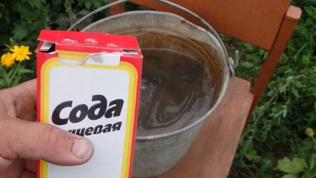 Когато се появят кафяви петна по ягодите, те се третират със соден разтвор няколко пъти с почивка между процедурите седмично. За да приготвите разтвор в 10 литра утаена вода, добавете 40 г сода за хляб.