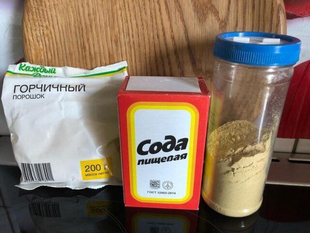 Заедно със содата добавете 2-3 супени лъжици течен сапун към водата