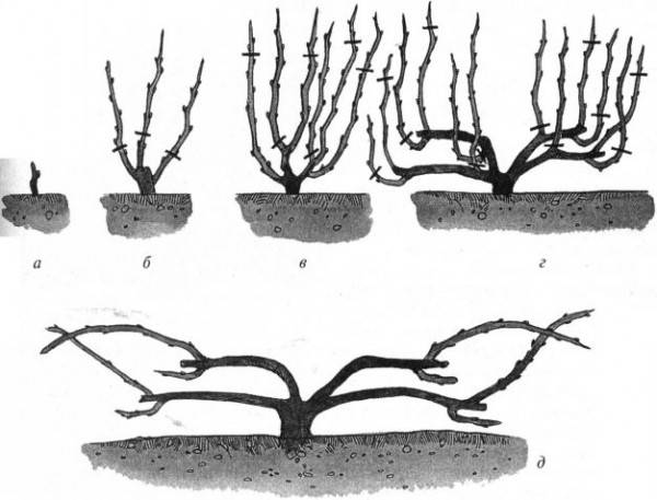 Има много начини за формоване на гроздови храсти. Всеки градинар избира такъв, който е подходящ за използване в неговия регион и е удобен лично за него, като го подобрява и модифицира от година на година. На практика формоването на гроздови храсти се свежда до следните схеми: