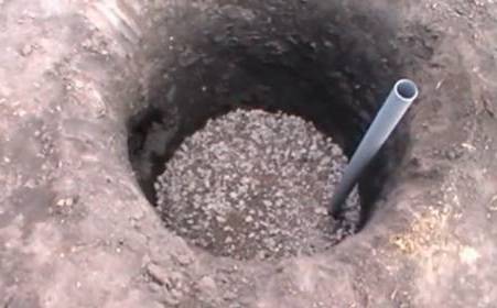 - В канализацията е монтирана тръба, чийто край ще се издигне над нивото на земята, когато дупката е заровена. Тръбата е поставена отстрани и е необходима, за да се подаде гроздето директно към корените по всяко време на годината.