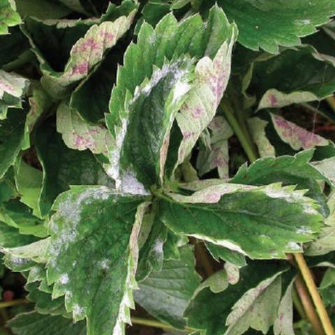 Болестта се проявява в години с ниски температури и висока влажност. Листата на ягодата изсветляват и се покриват с бял цвят, плодовете гният.Разпространението на болестта се улеснява от твърде често засаждане на ягоди и лошо плевене на плантацията.