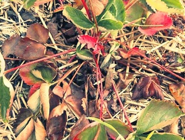 - За да изчистят ягодовите храсти от изсушени листа, те не само пречат на развитието на растенията, но и служат като убежище за вредители и могат да носят източници на инфекция. По-добре е да не откъсвате листата, а да ги отрежете с резачка, за да не извадите случайно храстите.