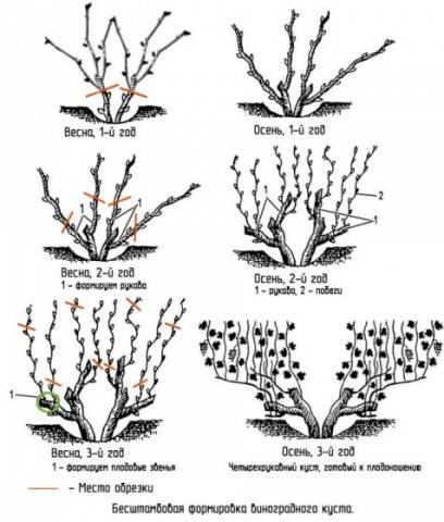 Ръкавите се сгъстяват с времето, което ги затруднява през зимата. Затова се препоръчва да се оформят нови ръкави и да се изрязват старите. За равномерно узряване на гроздето е необходимо да се отрежат горните секции на четката.