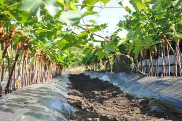 Разсадът се поставя на дъното на ямата и се заравя наполовина, след което се полива с вода и се изсипва горния слой земя. Гроздето е покрито найлоново фолио, в което се изрязва отвор за разсада. Необходимо е да премахнете материала в края на лятото.