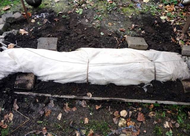 За зимата след резитба и зареждане с вода всички гроздови издънки се отстраняват от решетката, полагат се на земята и се покриват с агрофибър и парчета шисти или просто се покриват с пръст.