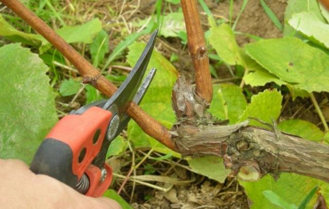 Отглежданите разсад от грозде през есента се съкращават до 2 пъпки. От тях в бъдеще ще се оформят 2 ръкава. През лятото доведените деца се изрязват, за да не пречат на узряването на реколтата.