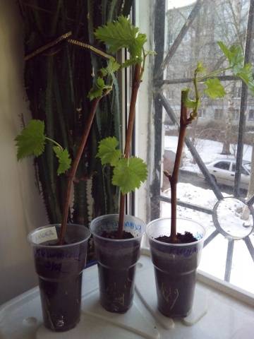 При резници разрезът се освежава, правят се надлъжни прорези върху кората отдолу, без да се засяга дървото, поставя се в контейнери за засаждане (удобно е да се използват пластмасови бутилки, разрязани наполовина), пълни с пръст, дървени стърготини и хумус в равни обеми. След месец гроздовите резници ще пуснат корени. За отглеждане те могат да бъдат поставени на перваза на прозореца. През пролетта, с настъпването на стабилна топлина, подготвените разсад се засаждат на постоянно място на растеж.