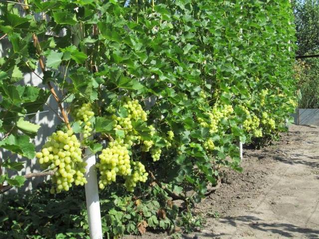 Наличието на опора за културата на гроздето е необходимо, тъй като реколтата е тежка и е трудно за леторастите да я задържат. Закрепването към решетките дава възможност да се получи висококачествена реколта. Гроздовите гроздове получават максимално количество слънчева светлина и топлина. Няма пренаселеност в листата, няма заплаха от гъбични заболявания.
