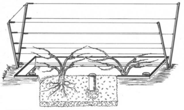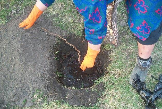 - Преди да засадите разсад, в дупката от почвата се прави могила. Можете да добавите 1 супена лъжица към земята. л. минерален тор. Фурорен гроздов разсад се поставя върху могила, кореновата система се огъва отстрани и се покрива с пръст с дебелина до 25 см.