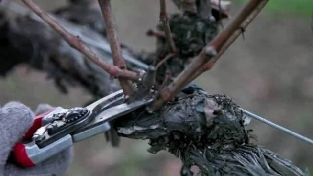 Оптималното време за резитба е есента. Потокът от сок спира в гроздето и процесът е безболезнен за храста. Лозата се нарязва на 6-8 очи. Премахнете всички стари и сухи мигли. На храста обикновено се оставят до 40 очи.