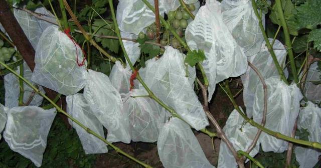 В допълнение към болестите, гроздето от Magarach Citron и Kishmish Citron е застрашено от оси и птици. Те наистина обичат сладките плодове. Препоръчително е да покриете насажденията с мрежа или да скриете всеки грозд в торба, както е на снимката по-долу.