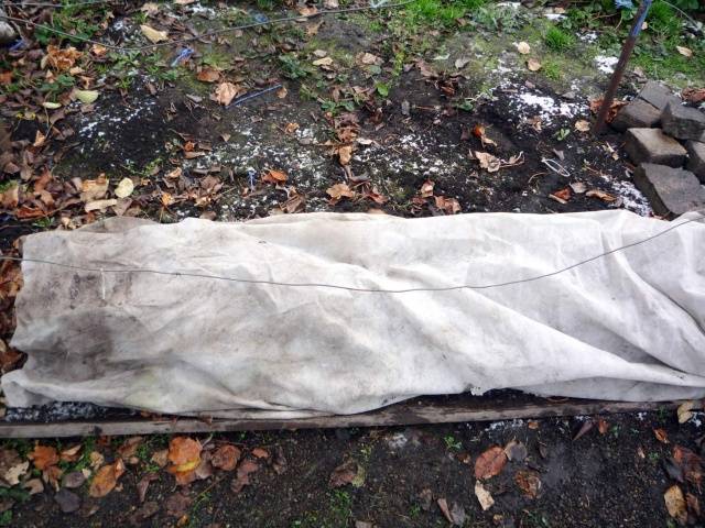 Гроздето е опушено и покрито със смърчови клони. Отгоре е издигната рамка от метални дъги, към която е прикрепена агрофибра. През зимата над храстите се хвърля допълнителен сняг.