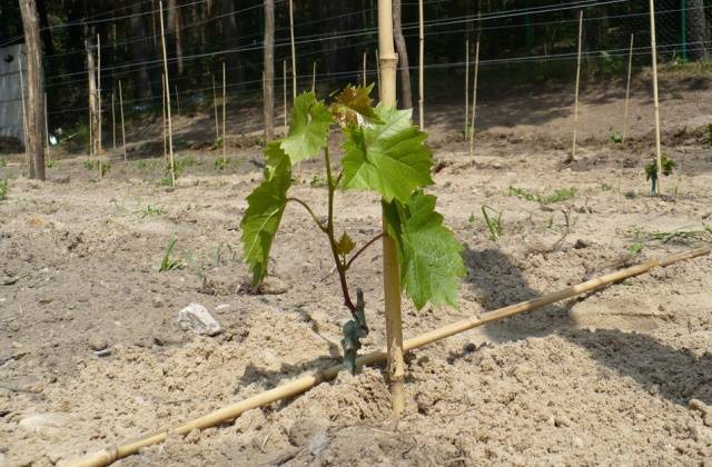 Лозата е вързана за опора за по-лесна поддръжка. За това се монтират опори, между които се изтегля жицата.