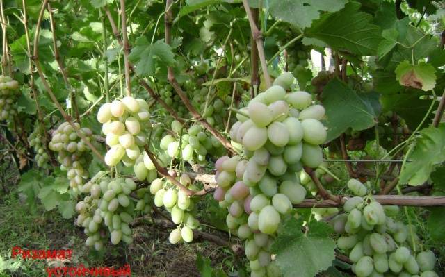 Един от най-често срещаните аналози на украинската селекция също има много допълнителни имена, но генетично изобщо няма нищо общо с истинския Ризамат. Това е напълно отделен сорт, който донякъде наподобява Ризамат във формата на гроздове и плодове, но в противен случай няма нищо общо с него.