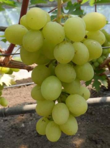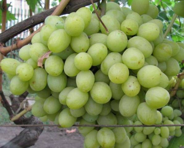 Помислете за гроздето Valek, описание на сорта, снимки, рецензиите трябва да започват с преглед на четките. Огромните гроздове с тегло 1,5–2,5 кг са основното предимство на хибрида. По отношение на големия размер на плодовете Валек уверено се конкурира с популярните високодоходни сортове. Гроздовете са оформени с плътно прилепване на плодовете.