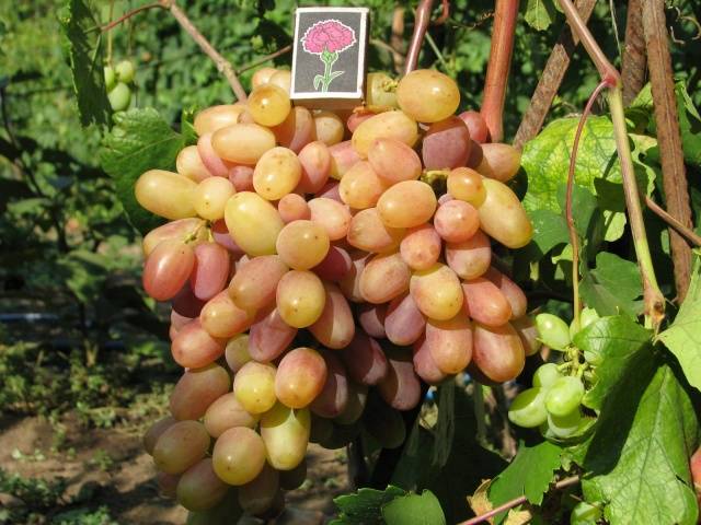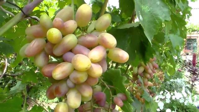 Цветът на гроздето зависи от това колко дълго са на слънце през деня, от наситено светло розово до наситено червеникаво лилаво. Фазата на узряване влияе и върху цвета на плодовете. Както можете да видите на снимката, грозде Виктор узрява равномерно.