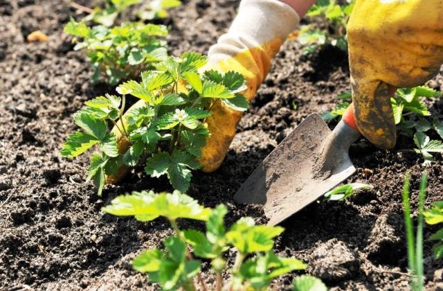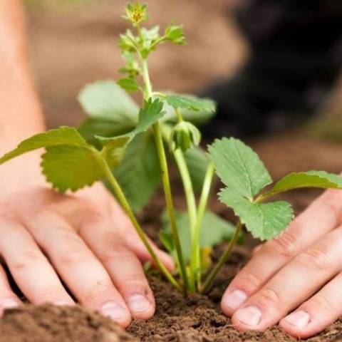 Разсадът се поставя внимателно в ямите, за да не се повреди кореновата им система, която е покрита със земя. След засаждането почвата трябва да се уплътни. След това ягодите се поливат и се покриват с фолио за 10 дни. Това ще предпази растенията от застудявания и ще укрепи корените им.