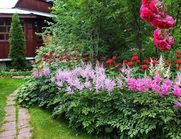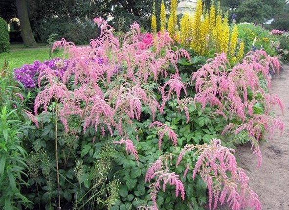 Няколко вида астилба, засадени заедно по пътека или решетъчна ограда, ще създадат светло настроение.