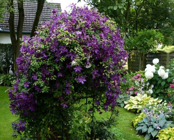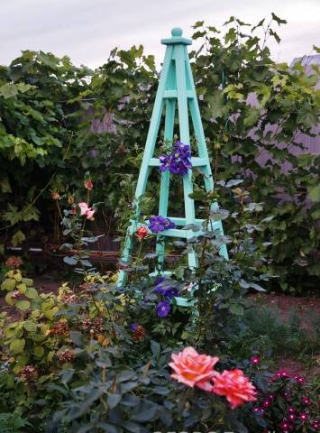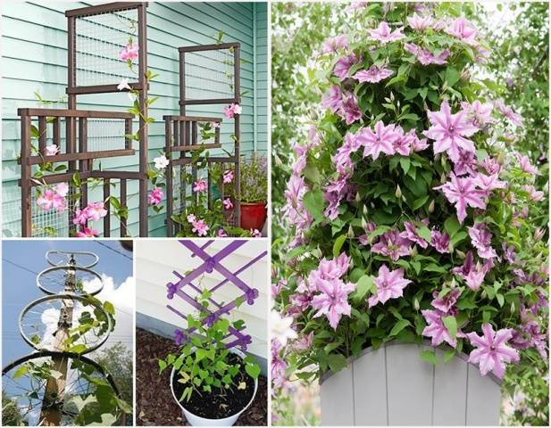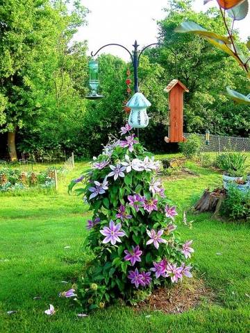 - самостоятелни стойки за клематис или други къдрави цветя, които могат да имат абсолютно всякаква форма и сложност на дизайна, изработени от различни материали;