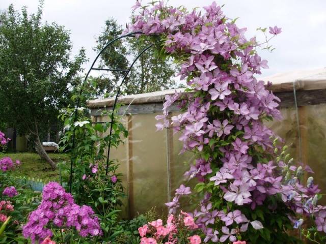 Сложността и видът на поддържащата структура за клематис зависи само от въображението и уменията на изпълнителя. Ако собственикът на сайта знае как да работи с метал, той може да направи ковани опори или да използва заваръчна машина в работата си. Ще бъде по-лесно да изградите решетки от дърво - трябва ви само трион и няколко дузини пирони. За най-мързеливите (или за жените) е подходящ вариантът да направите стойка от мрежа или гъвкави материали.