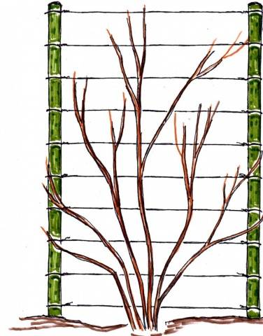 - Много по-удобно и по-лесно е да се грижите за растение, прикрепено към опора: достъпът до корените не е труден, лесно е да се приложи листна превръзка и да се извърши превантивно пръскане на къдрави цветя, подрязването на храст не е трудно.