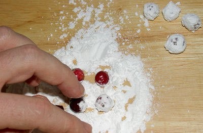 - С малко количество горски плодове това може да стане на ръка, като търкаляте боровинките с пръсти като снежни топки.