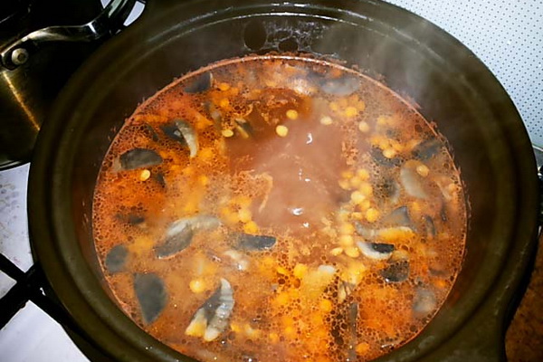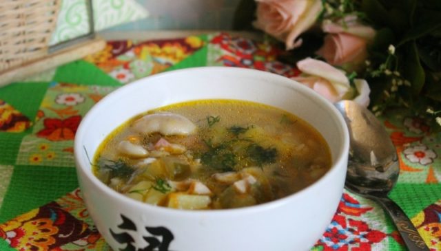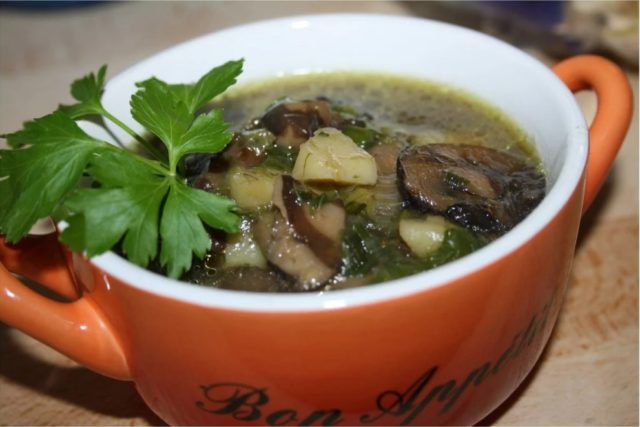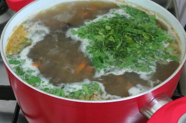 Гъбите се нарязват на ситно и се варят във вряща вода за 1/3 час. Към тях се добавят пържени зеленчуци и картофи, нарязани на парчета. Веднага след като картофите са напълно сварени, към бульона се добавят сол и дафинов лист. Преди да сервирате ястието, се препоръчва да настоявате в тенджера под капака за един час.