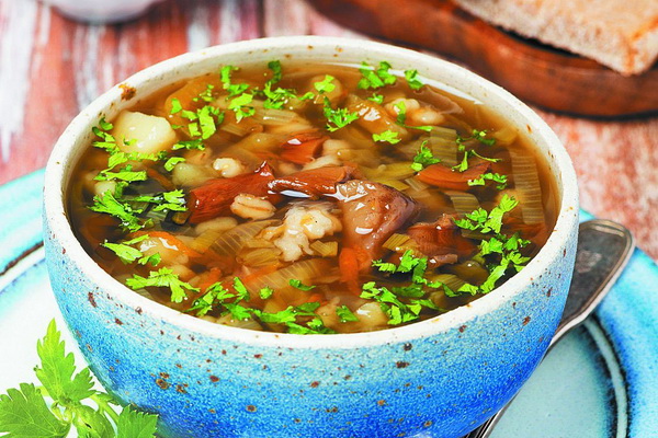 Първите курсове с перлен ечемик са класика на съветската кухня. Този вид приготвяне на супа е все още широко разпространен в Русия и съседните страни. За да го приготвите, за 3 литра вода са ви необходими: