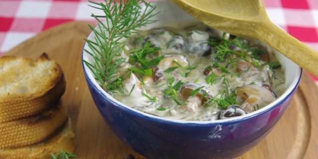 Кремът е най-доброто допълнение към гъбените бульони. Консистенцията на готовото ястие става невероятно нежна. За 250 г предварително сварено масло е най-добре да се използват 200 мл мазен продукт с показател най-малко 20%. Сред останалите съставки са: