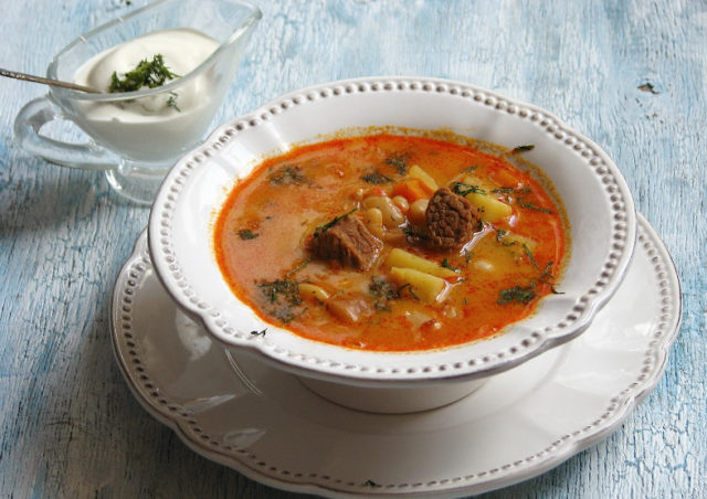 След 15-минутно готвене на основната съставка към бульона се добавят малки тестени изделия и се варят до пълна готовност. Едва след това готовото първо ястие се осолява и се добавя предварително приготвеното пържене. Преди сервиране се препоръчва готовият продукт да се вари 40-50 минути.